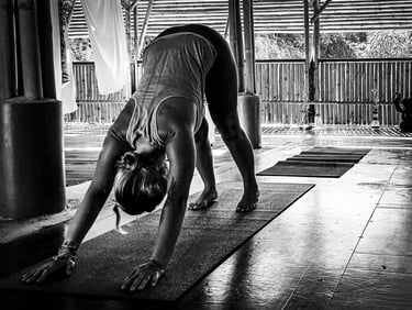 Asana practice in yoga often feels like bodyweight training - all you need is your body, and, at most, a thick beach towel to serve as a mat. This makes yoga ideal for a nomadic lifestyle, as you can practise it anywhere - whether in a hotel room, park, beach, or even an airport - without the need for heavy or bulky equipment. A small space is enough, making it perfect for tight quarters, like studio apartments or shared accommodations.