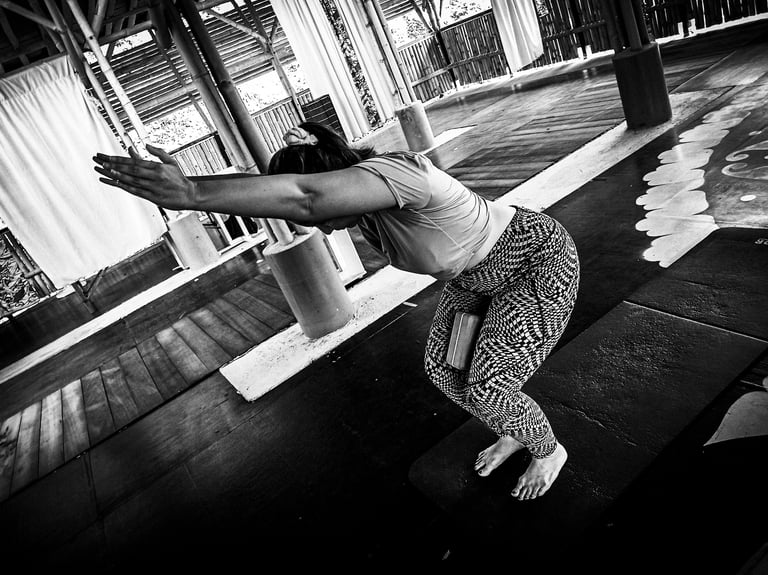 The term "Utkatasana" translates to "Fierce Pose" in Sanskrit but is commonly translated as "Chair Pose" for the shape the body takes . The word "utkata" means "powerful" or "intense," which reflects the strength and focus required to hold this posture.