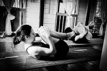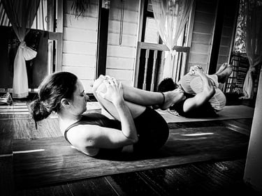 We use the Pawanmukhtasana Series 1 (the "Joint Loosening" series) to unlock the lower kinetic chain and retrain the body's posture.
