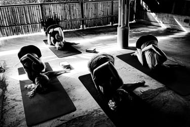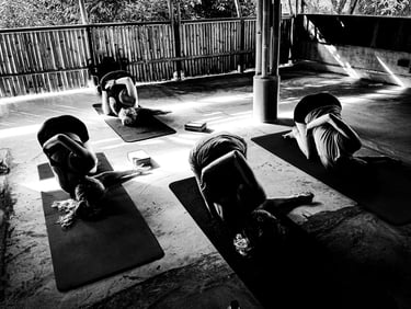 The synchronised movement and breath create an instant sense of shared purpose. There’s something quietly powerful about a room full of people flowing through the same sequence. Connection builds—without anyone needing to force conversation or share feelings.